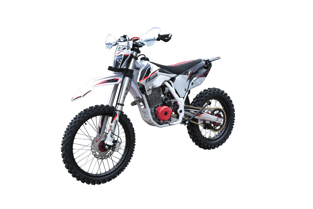 Мотоцикл эндуро FXmoto CB300F — это идеальный выбор для тех, кто ищет сочетание мощности и надежности. С объемом двигателя 300 кубических сантиметров и мощностью в 25 лошадиных сил, он готов справляться с любыми дорожными условиями, обеспечивая отличную производительность на любых маршрутах.