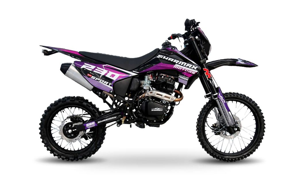 Кроссовый мотоцикл Sharmax Sport 230 — это спортивный мотоцикл, который сочетает в себе стильный дизайн и высокую производительность. Он оснащен мощным 200-кубовым двигателем, который обеспечивает отличную динамику и скорость.