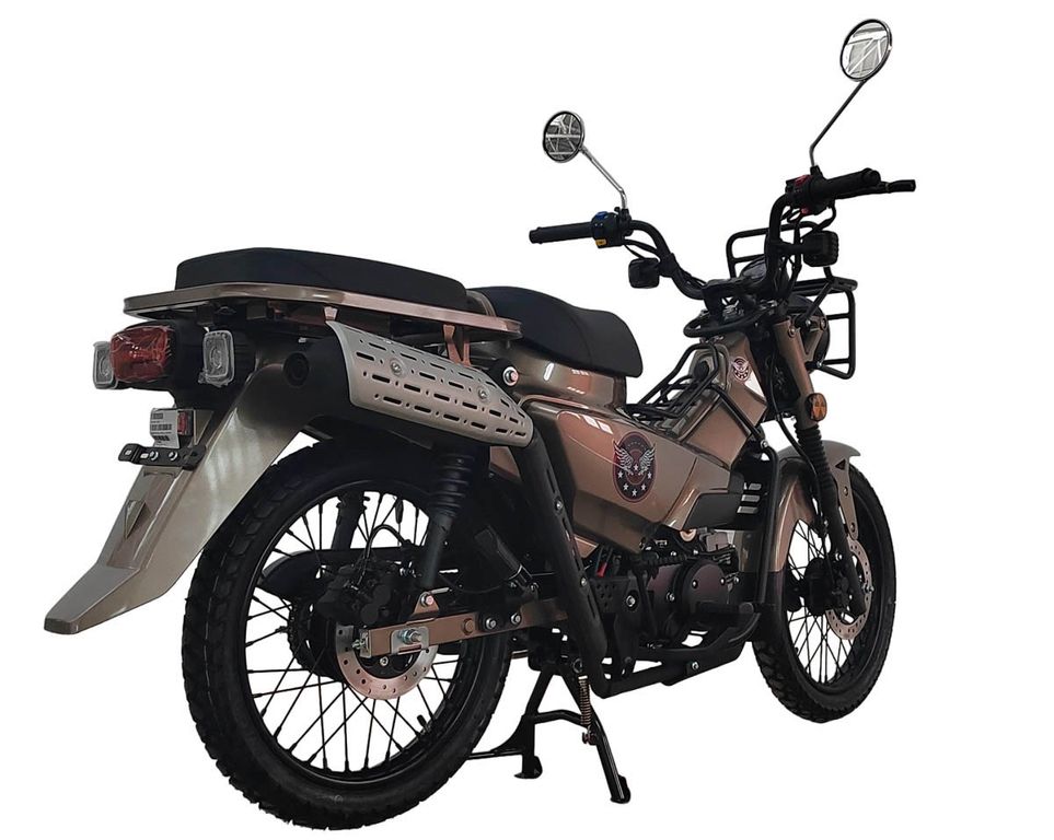 Мопед XTRAIL 2 - реплика Хонды Трейл - обновленного мопеда Хонды CT. Крупный мопед, подходит и высоким людям. Коробка - полу-автомат 4МКПП, все вниз, не круговая., нет сбалансированного вала.