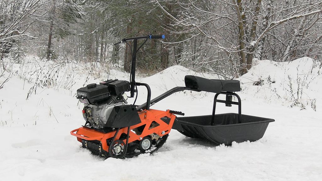 Компактный мотобуксировщик «Белка» 8+ л.с. оснащён надёжным двигателем LIFAN KP230-R с катковой подвеской. Благодаря гусенице типа «Буран» (380 мм, 1/2) техника уверенно движется по снегу и рыхлому грунту. Лёгкая конструкция разбирается и помещается в багажник седана, а в комплект входят сиденье и сани. Отличный вариант для рыбалки, охоты и загородных поездок.