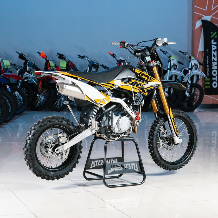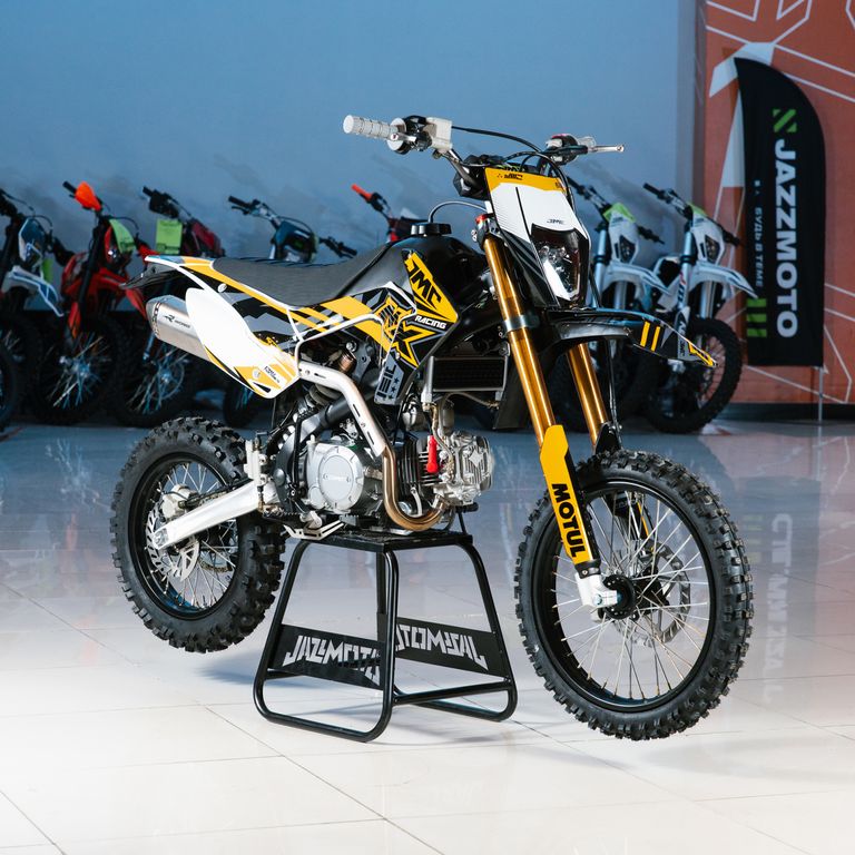 Новая модель JMC 150 Enduro 17/14 построена на базе хорошо зарекомендовавшей себя пространственной раме JMC V3.0 и оснащена двигателем YX 140 с электростартером.