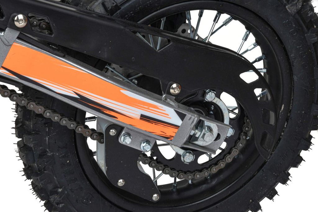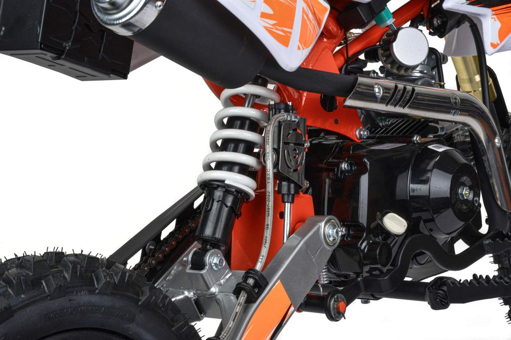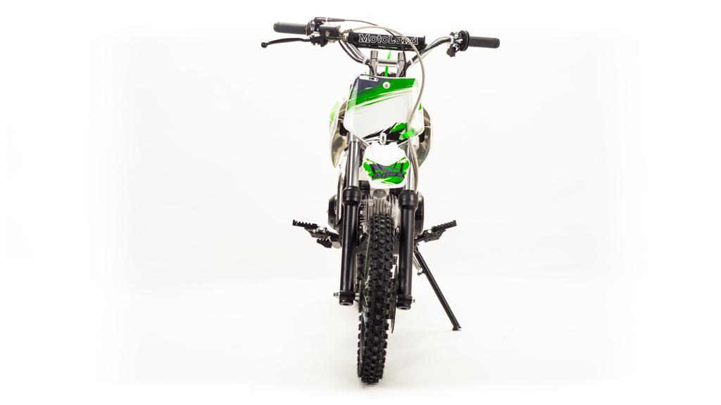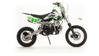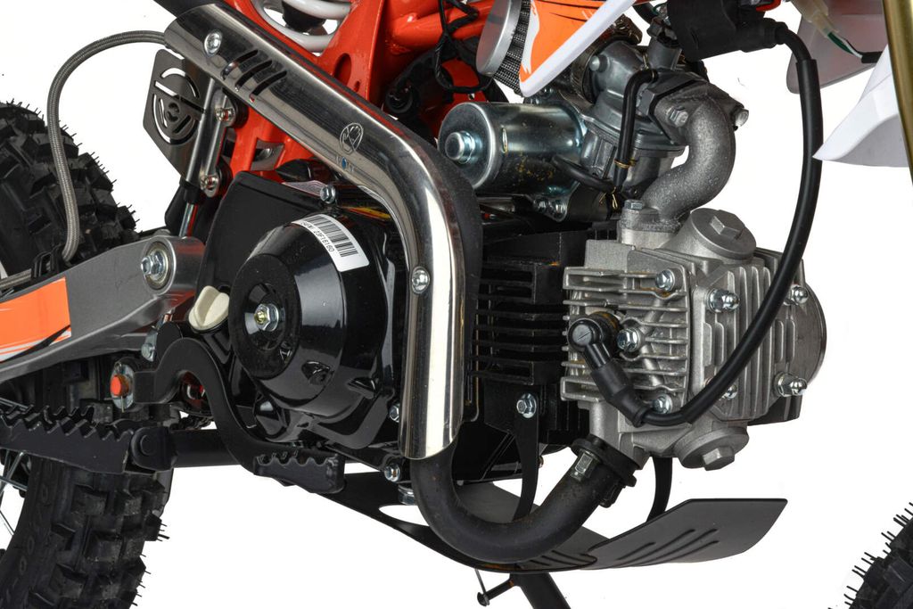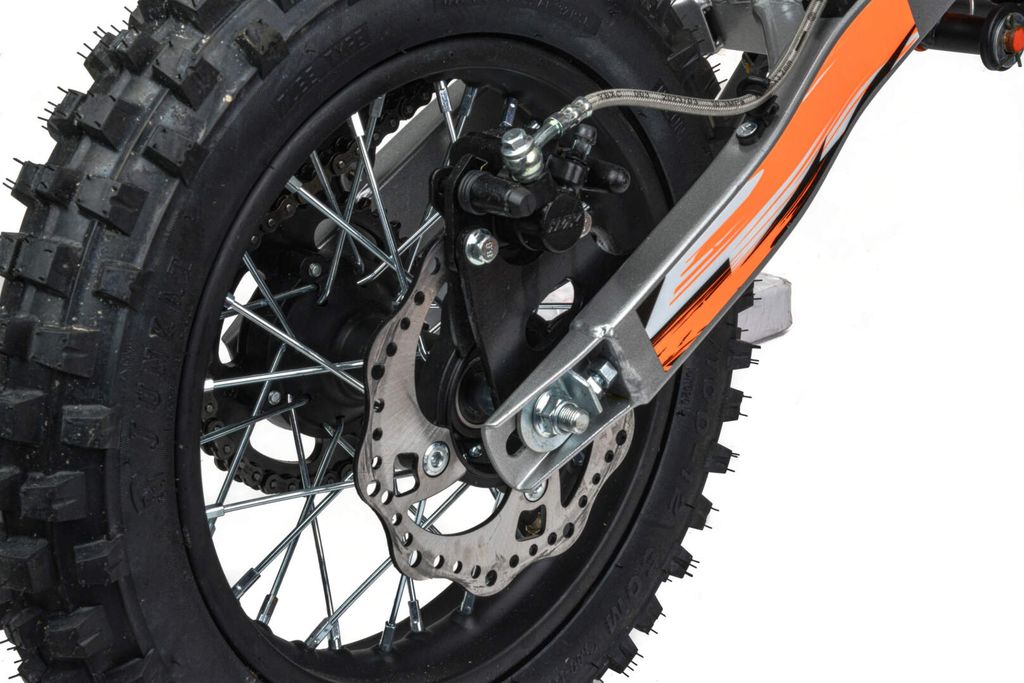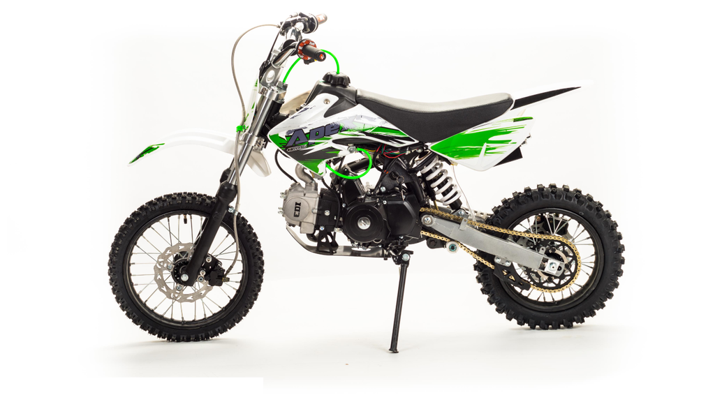 Недорогой надёжный питбайк APEX10 идеален для поездок по грунтовым дорогам и бездорожью для детей которые уже научились ездить на маленьких мотоциклах объемом 50 куб.см. Хорошо чувствует себя на мягком и среднем грунте.