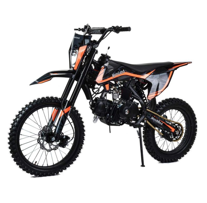 Встречайте долгожданную новинку на 150 куб. Питбайк Motoland GF 150 E идеален для поездок по грунтовым дорогам и бездорожью. Хорошо чувствует себя на мягком и среднем грунте, разгоняется до 90 км/ч. Оснащён спортивными траверсами и амортизаторами с регулировкой. весит всего 75 кг.